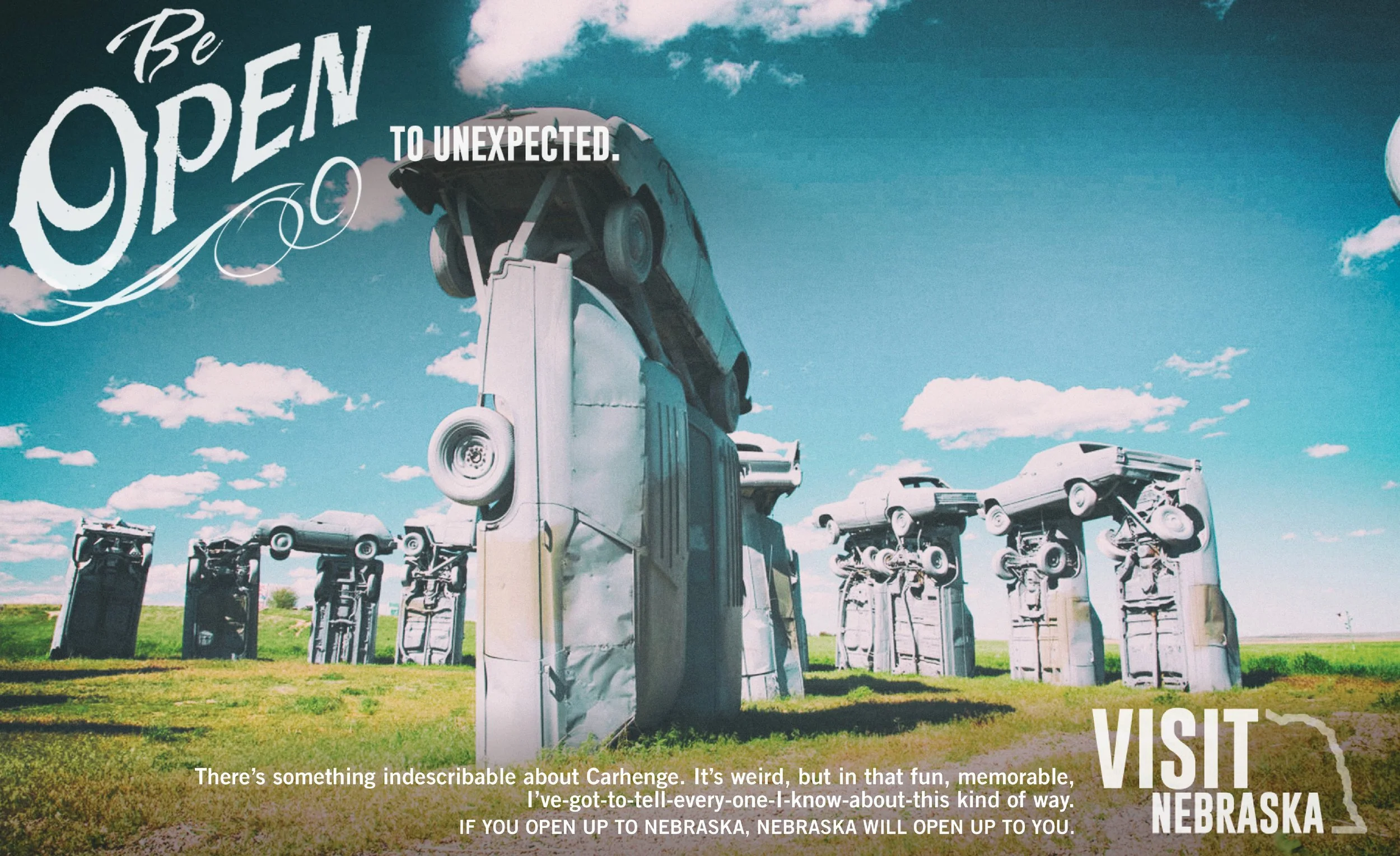 As an Art Director at Laughlin Constable, we embarked on a mission to redefine Nebraska’s image from a “fly-over state” to a captivating travel destination through our 2017 brand campaign. Being a Nebraskan myself, I dove into this design challenge with a blend of enthusiasm and native insight. Through strategic messaging and visually engaging assets, we worked to craft a narrative that showcased the unique allure of Nebraska. The campaign not only helped bring tourists to Nebraska, it ignited curiosity and travel interest, marking a significant stride in altering perceptions and promoting Nebraska's tourism appeal. These ads we promoted in Illinois, Wisconsin, Missouri, Oklahoma, and many other states.